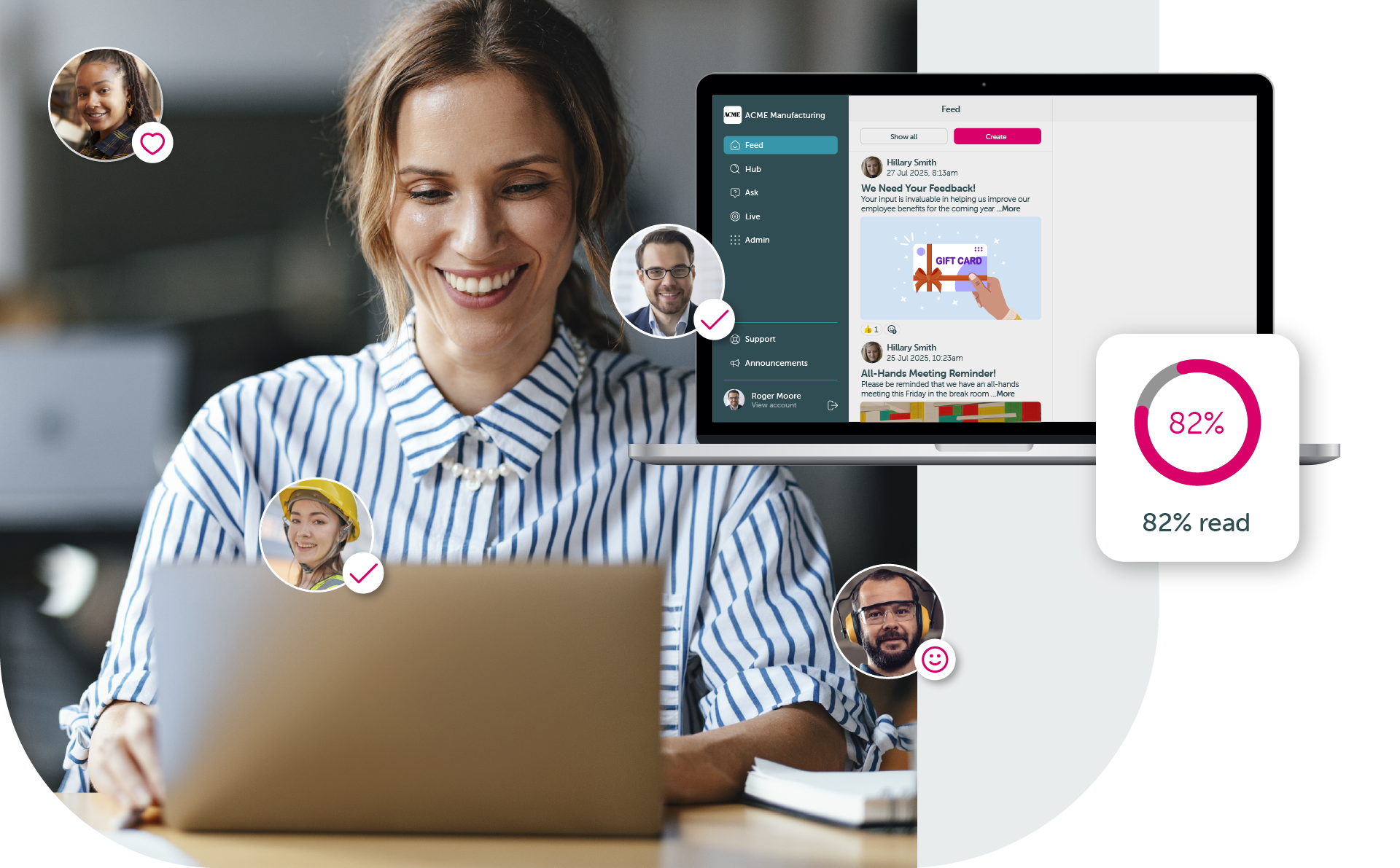 Drive real engagement with tools that let employees react, reply, sign documents, give feedback, and complete quick quizzes—wherever they’re working.