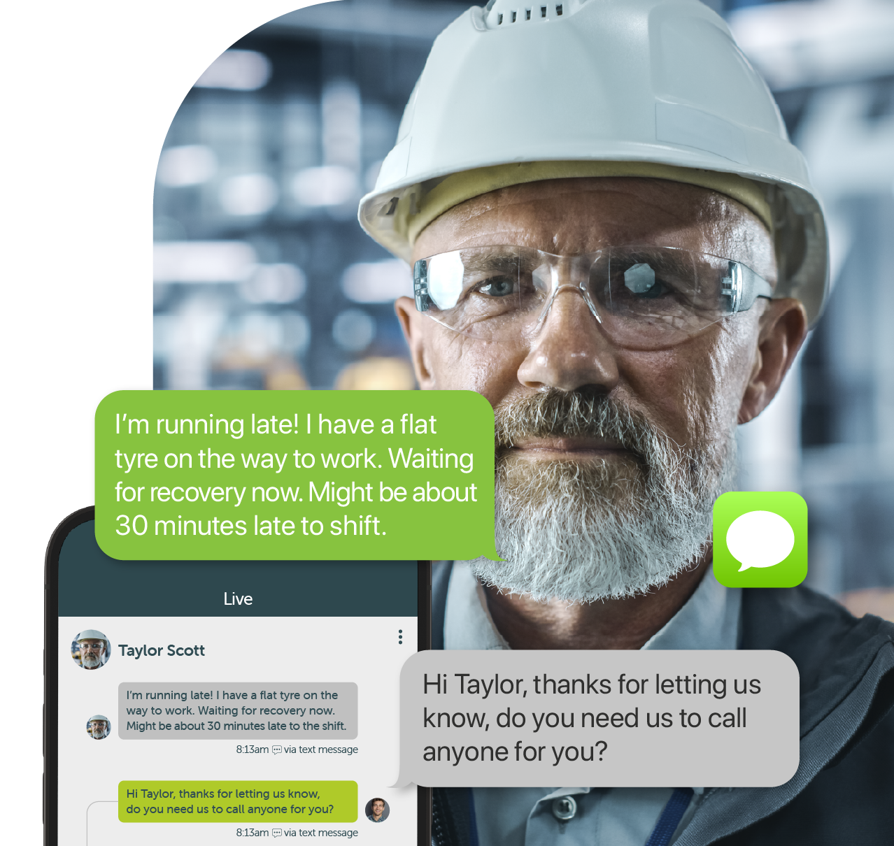 Employees can text a dedicated number or use the “Ask” tab in the OurPeople Web App to get support fast.