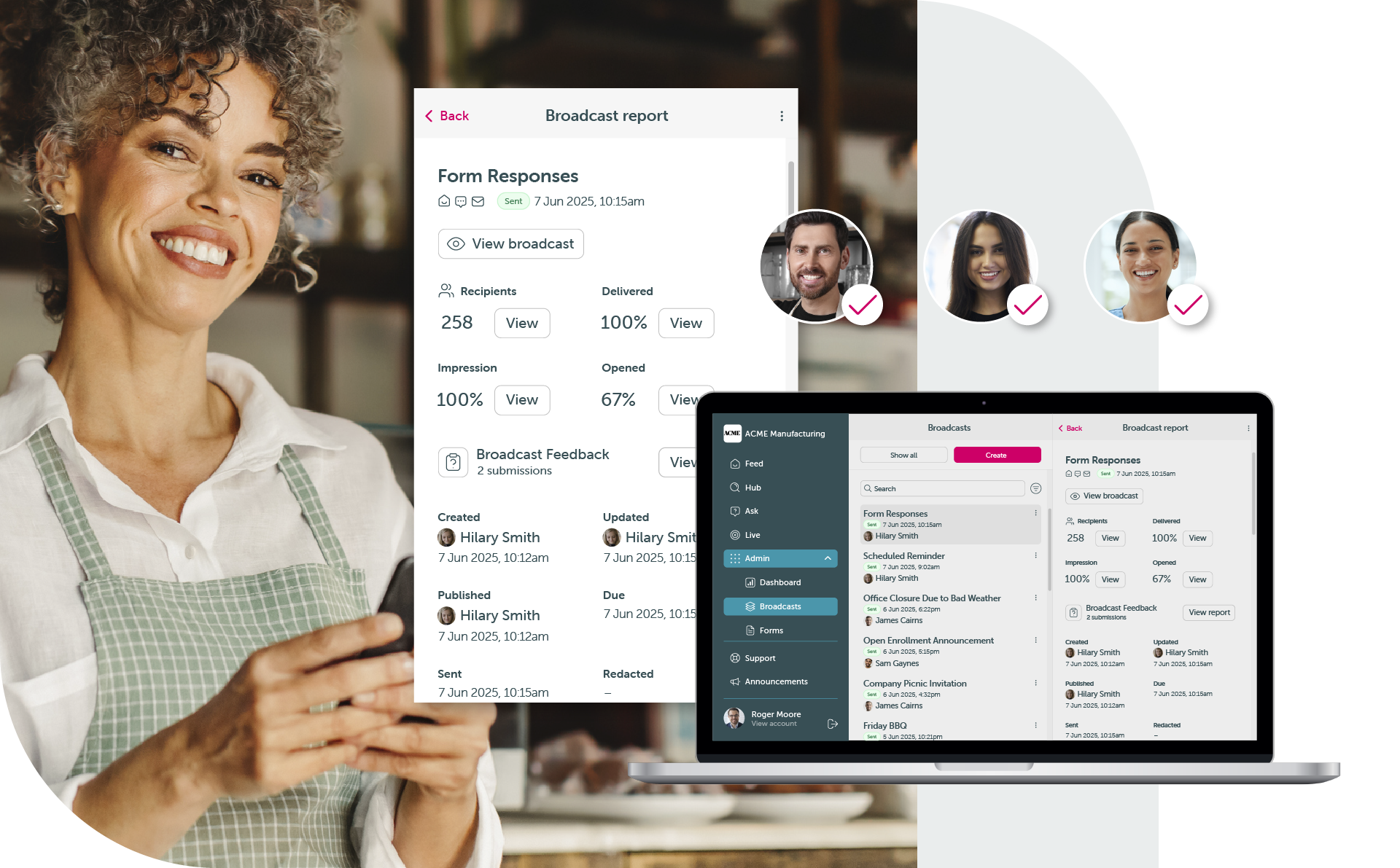 Make forms available anytime through the Hub, or send them via text, WhatsApp, or RCS—perfect for tasks, checklists, and team feedback.
