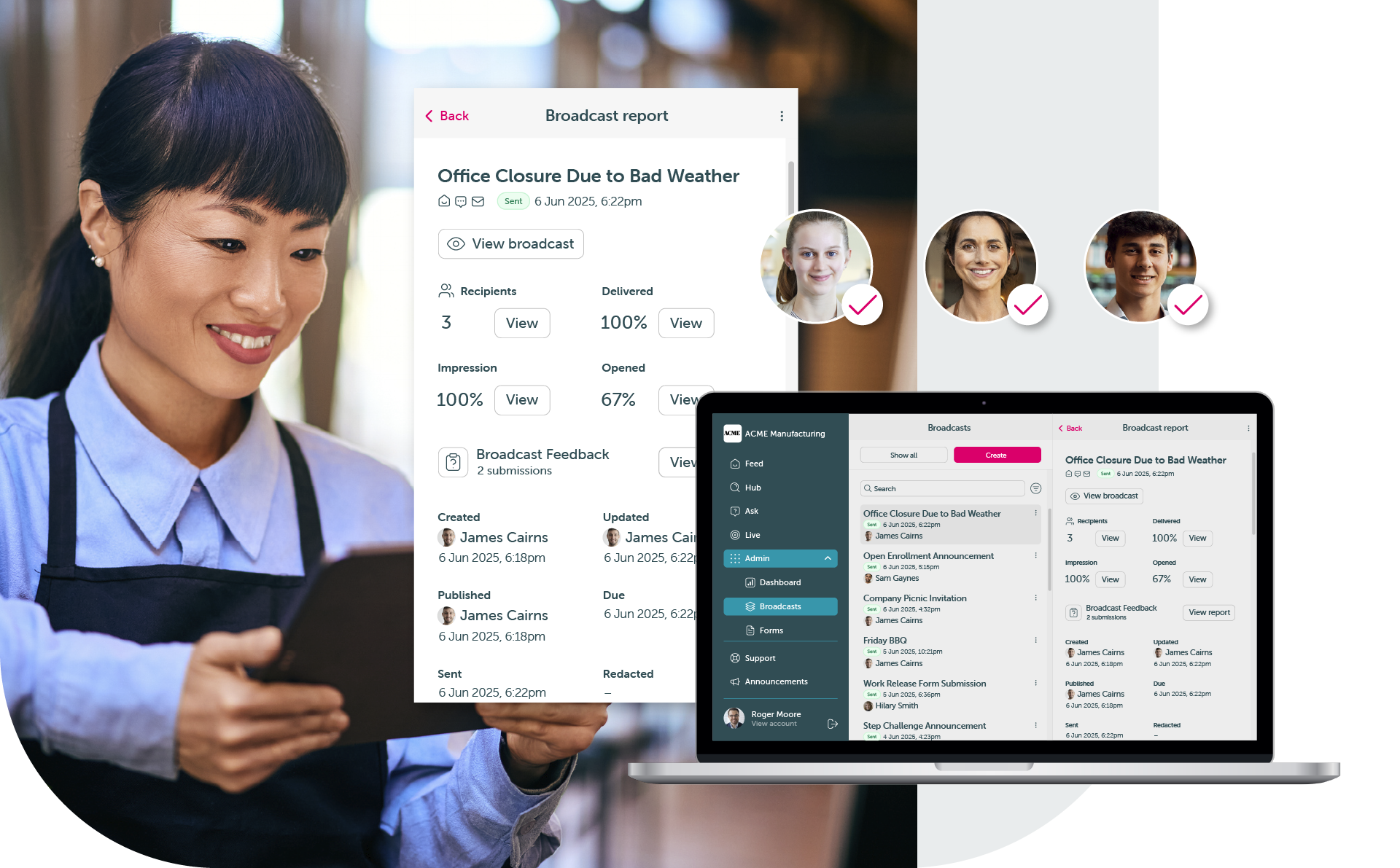 Send videos, PDFs, surveys, documents or links. Whether it’s a new policy or a quick video update, it goes straight to their phone.