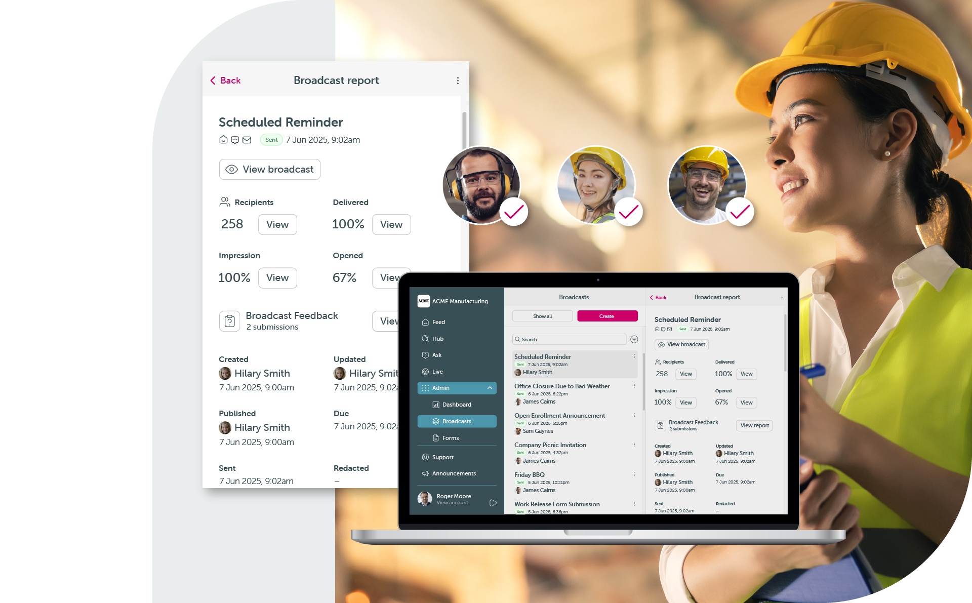 Set broadcasts to repeat—daily, weekly, or monthly—ideal for compliance reminders, deadlines, or regular check-ins with frontline teams.